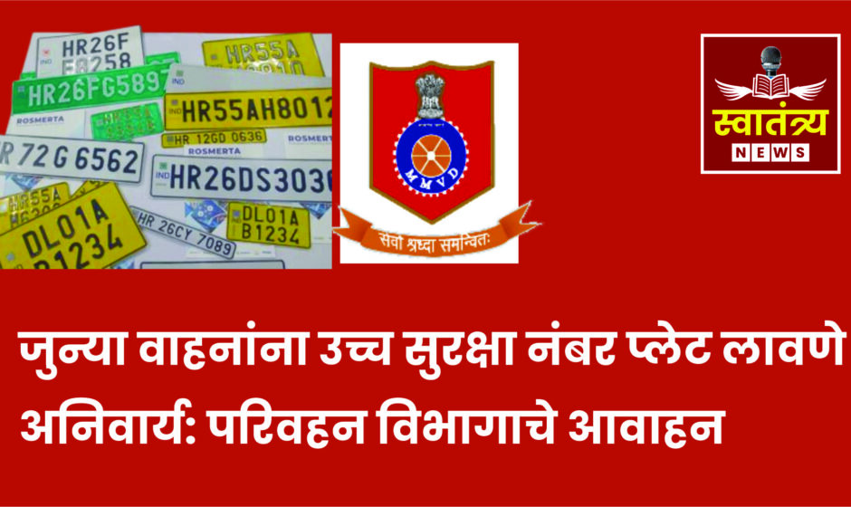swatantryanews.com > News > ताज्या बातम्या > जुन्या वाहनांना उच्च सुरक्षा नंबर प्लेट लावणे अनिवार्य: परिवहन विभागाचे आवाहन|