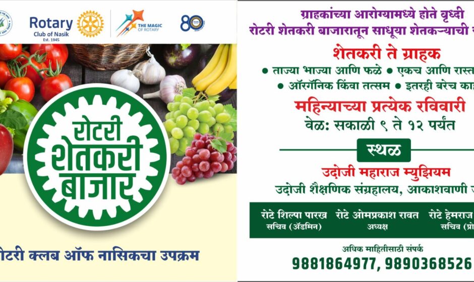 नाशिकच्या रोटरी क्लबने सुरू केलेला रोटरी शेतकरी बाजार गेल्या सात वर्षांपासून नाशिककरांच्या हृदयात घर करून आहे. ऑरगॅनिक सर्टिफिकेटधारक शेतकऱ्यांना एकाच छताखाली आणण्याच्या या उपक्रमामुळे ग्राहकांना दर्जेदार आणि केमिकल-रहित उत्पादने उपलब्ध झाली आहेत.