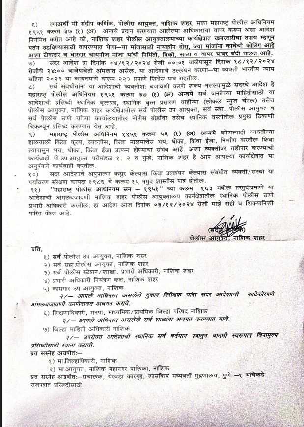 शासन निर्णय प्रभावीपणे अंमलात आणण्यासाठी नागरिकांची साथ आवश्यक आहे. नायलॉन मांजाचा वापर पूर्णतः थांबवून समाजात सकारात्मक बदल घडवण्यास सर्वांनी पुढाकार घ्यावा.