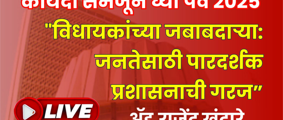 📕✒️ “कायदा समजून घ्या”पर्व २०२५ 📕✒️”विधायकांच्या जबाबदाऱ्या: जनतेसाठी पारदर्शक प्रशासनाची गरज”